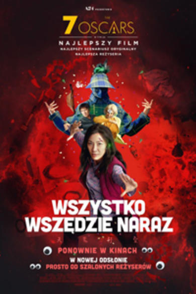 Evelyn Wang (Michelle Yeoh), borykająca się z trudami codzienności mama w średnim wieku, natrafia na klucz do "multiwersum": sieci przecinających się ze sobą światów, gdzie może zbadać wszystkie drogi życiowe, którymi nie poszła: począwszy od gwiazdy filmowej do uznanego szefa kuchni Teppanyaki. Kiedy pojawiają się mroczne siły, Evelyn będzie musiała wykorzystać wszystko co ma i wszystko czym kiedyś mogła być, aby ocalić to, co jest dla niej najważniejsze: jej rodzinę. Dzięki niesamowitym scenom sztuk walki, lekkiemu humorowi w stylu pop oraz przyprawiającym o bicie serca emocjom, to epicki i porywający film, jakiego nigdy wcześniej nie widzieliście.